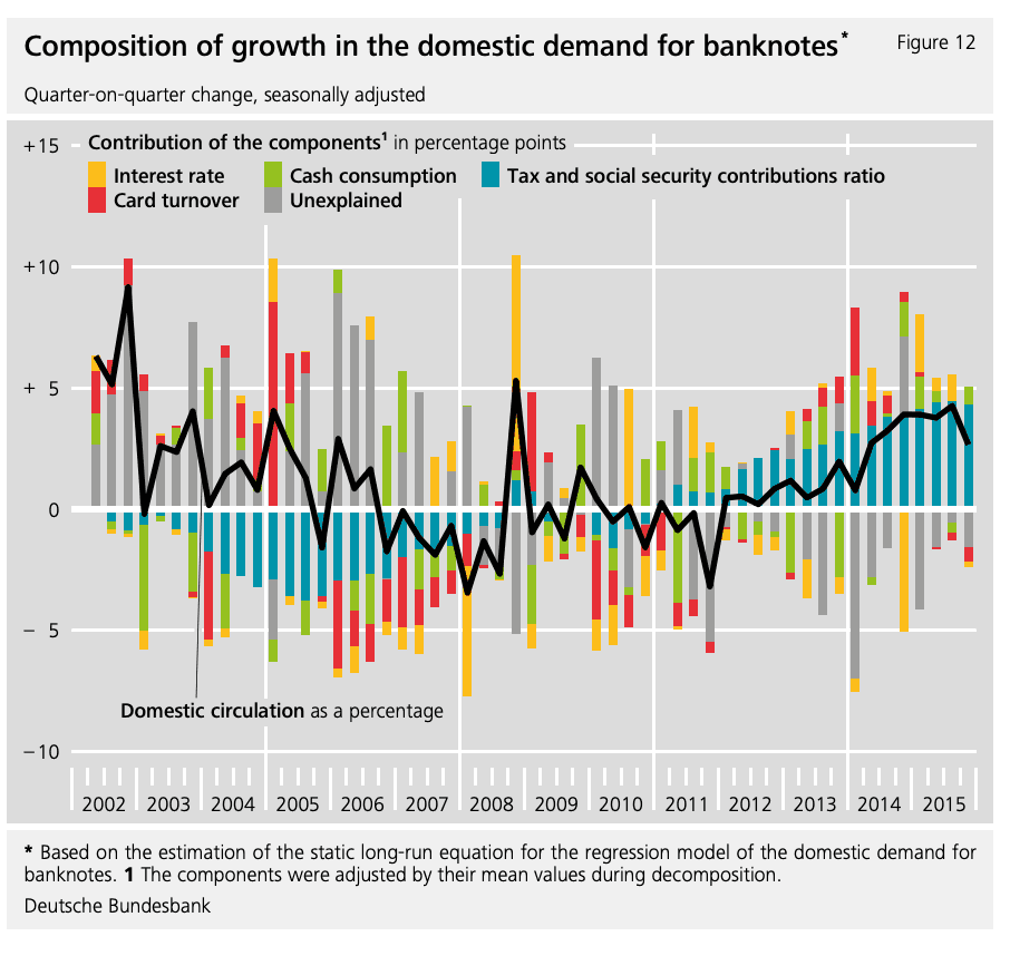 Authored by Nikolaus Bartzsch and Matthias Uhl from the Deutsche Bundesbank in a collaboration with shadow economy expert, Professor Friedrich Schneider of the Johannes Kepler University Linz, the study employs a time series econometric regression analysis to question why people hold cash in Germany, and whether there's enough evidence to presume it's in a criminal environment.