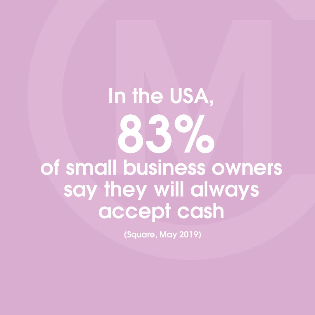 In the USA, 83% of small business owners say they will always accept cash (Square, 2019)