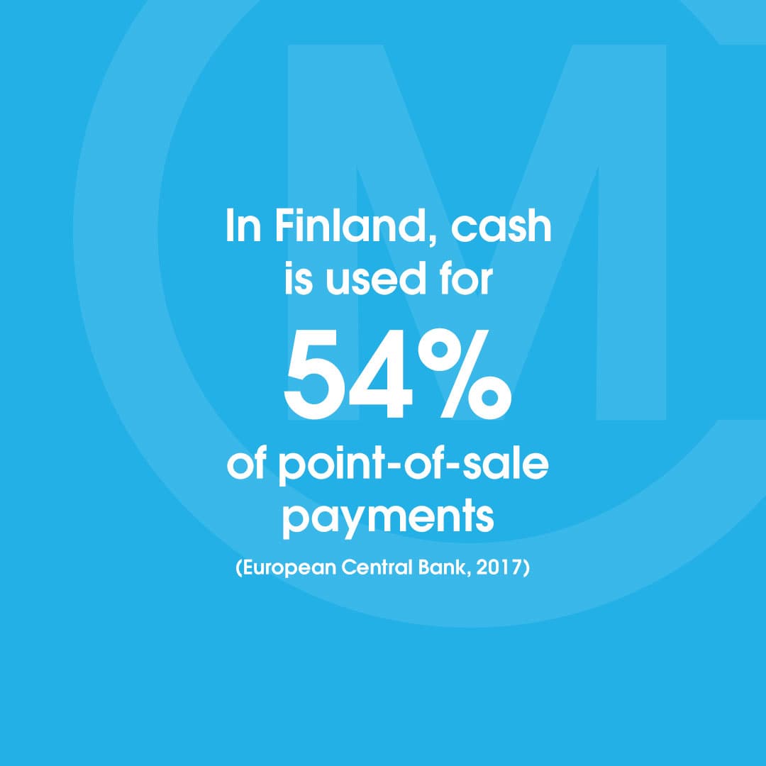 In Finland, cash is used for 54% of point-of-sale payments (ECB, 2017)