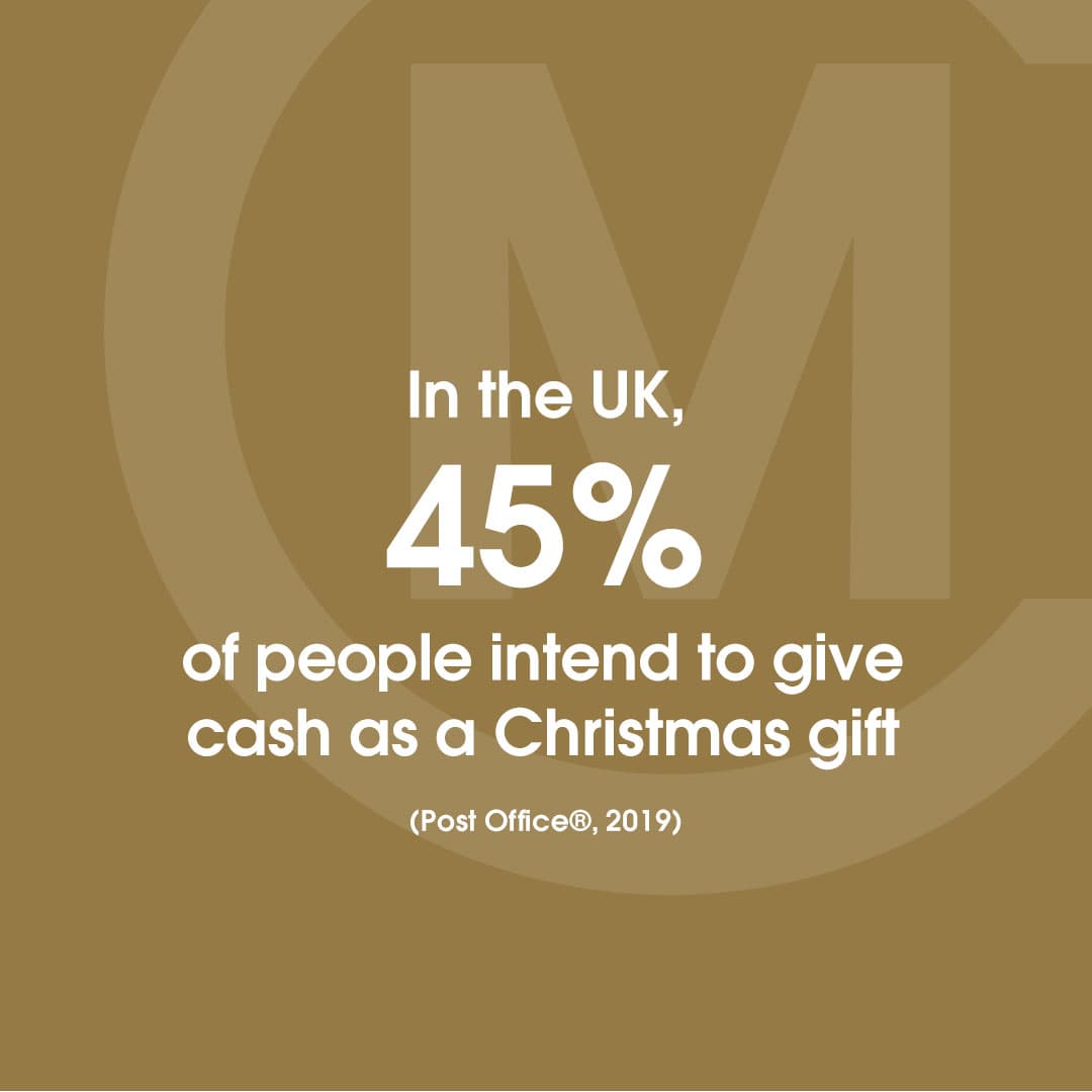 In the UK, 45% of people intend to give cash as a Christmas gift (Post Office®, 2019)