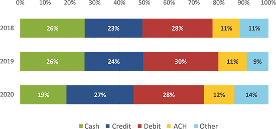 Regardless of how the payments landscape evolves, it is important to note that consumers continue to use cash, though at a lower rate, even amid a pandemic.